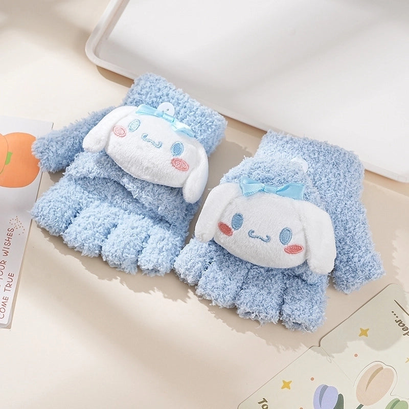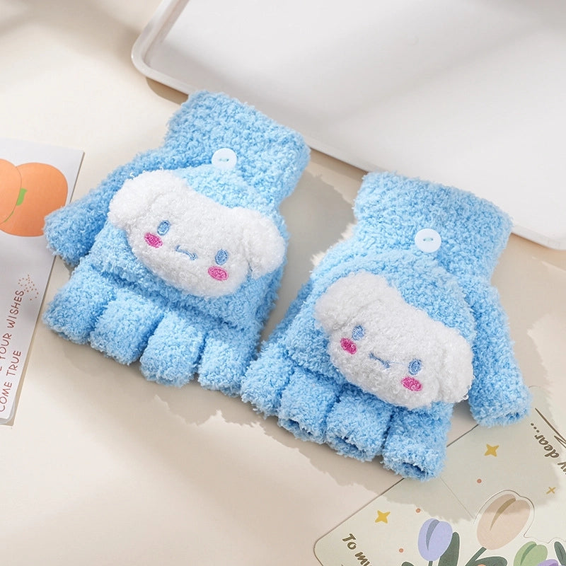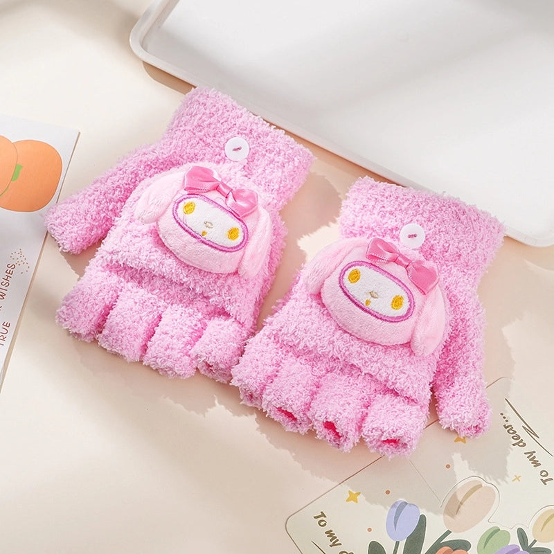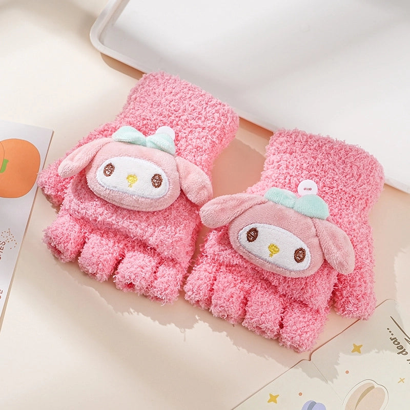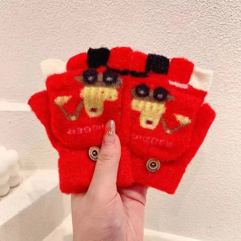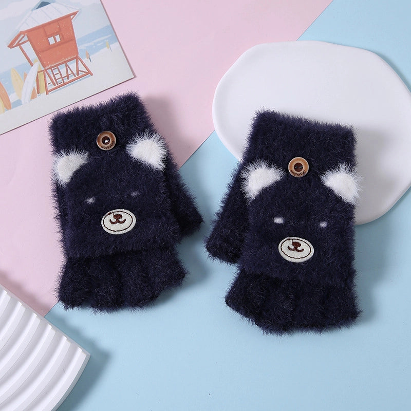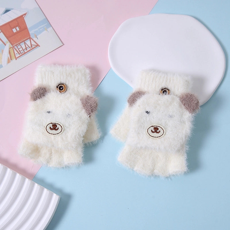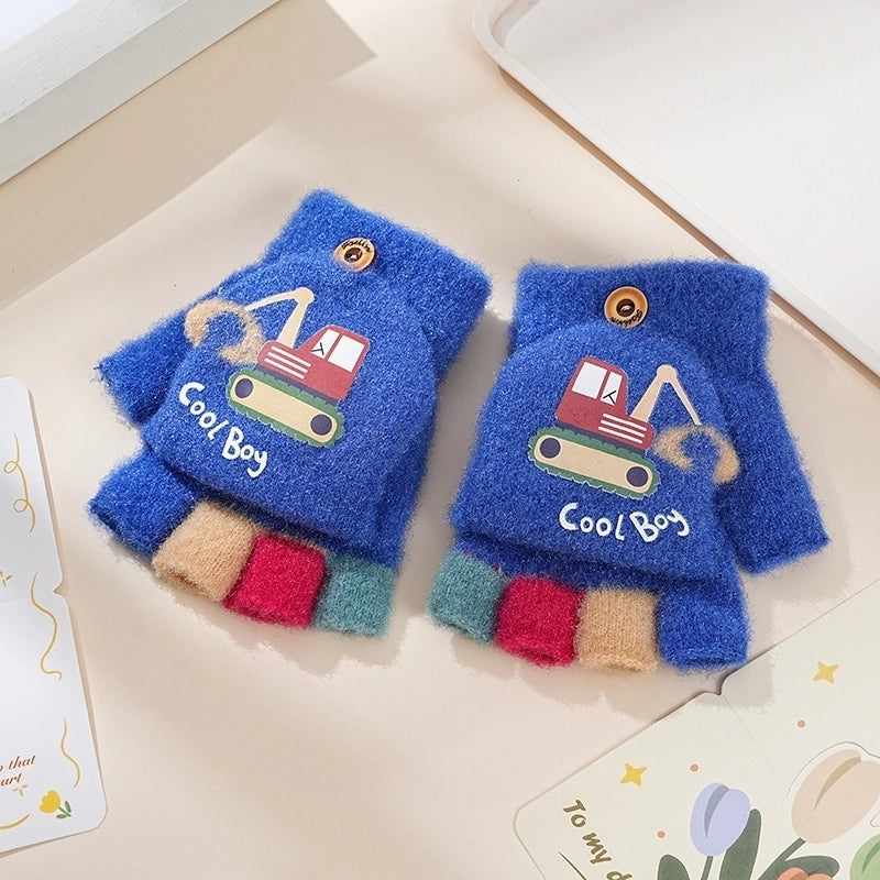 Autumn And Winter Children's Flip Knitted Gloves Half Finger Dual-purpose Boys And Girls Cute Warm Exposed Fingers Children Students 11