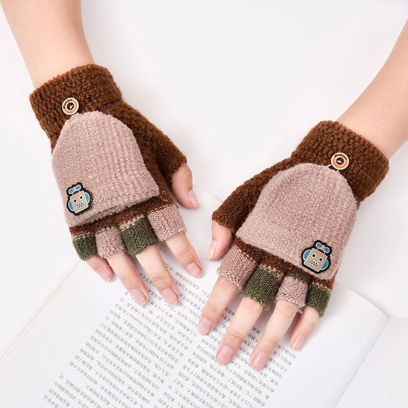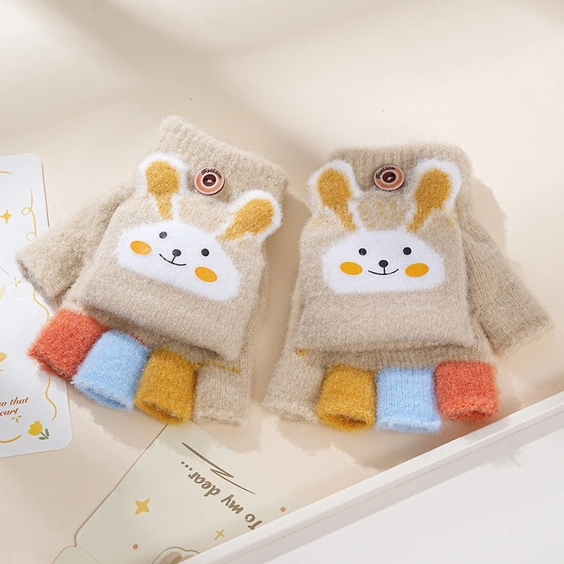 Autumn And Winter Children's Flip Knitted Gloves Half Finger Dual-purpose Boys And Girls Cute Warm Exposed Fingers Children Students 15
