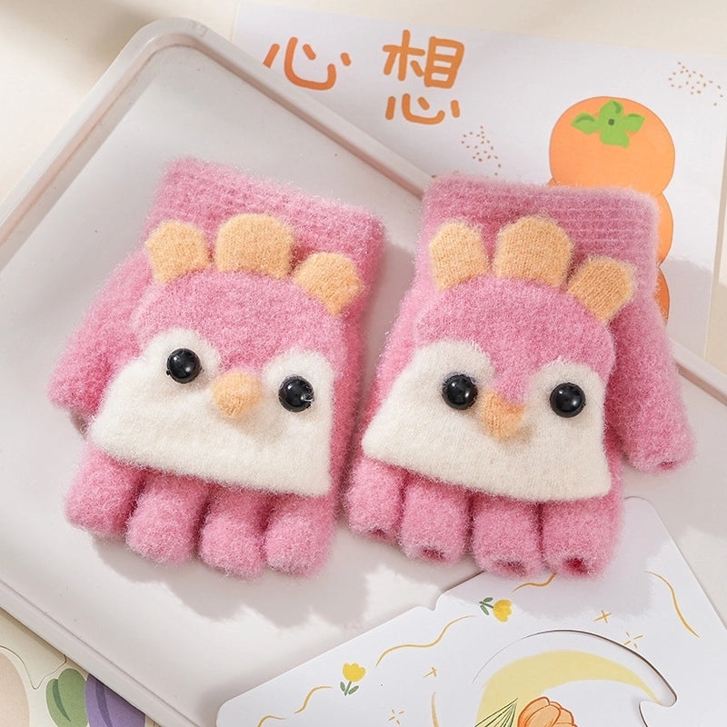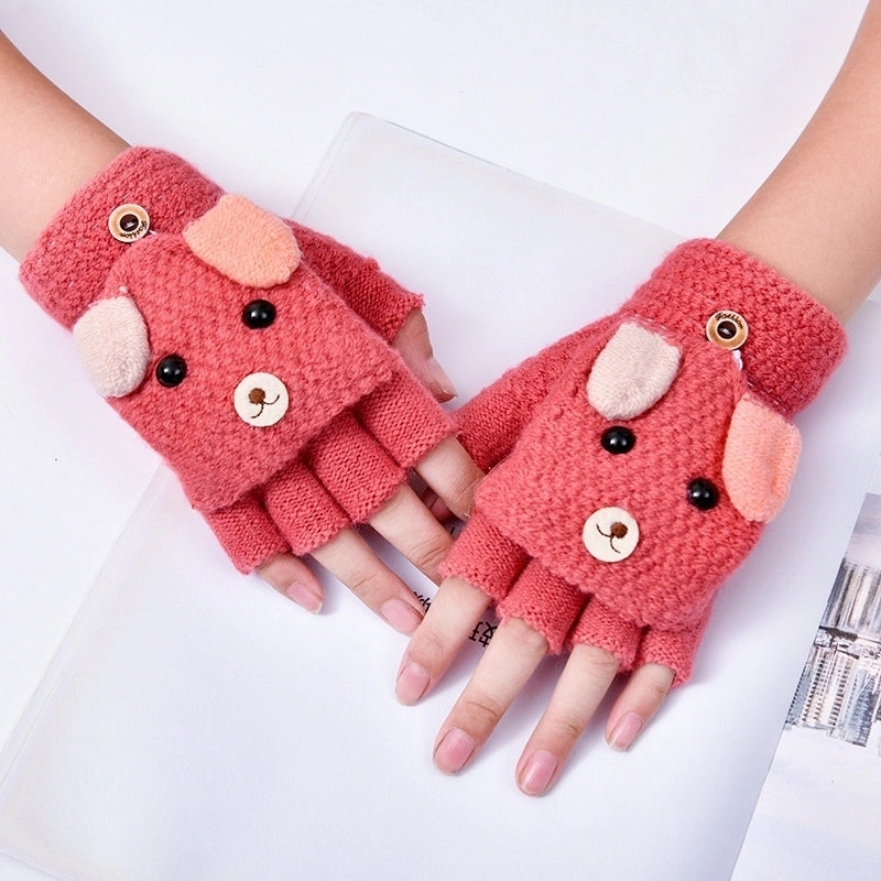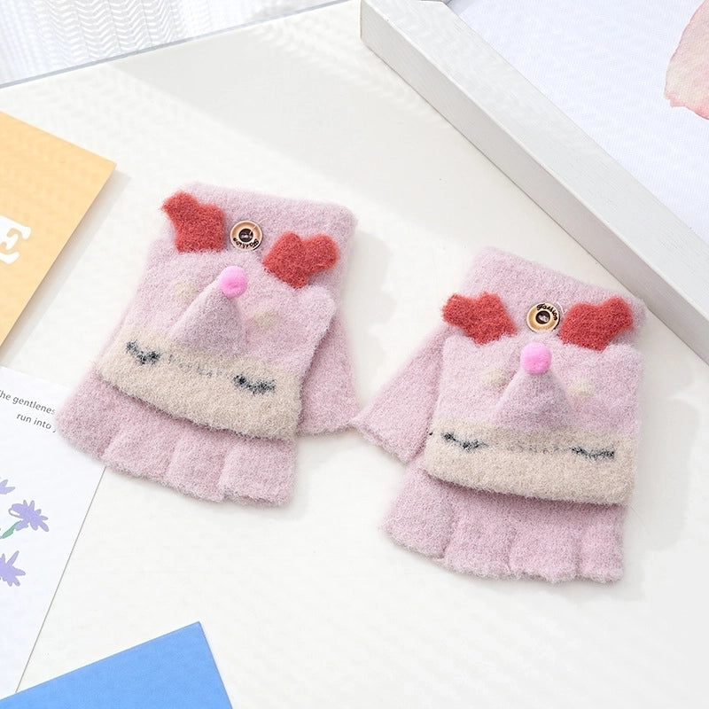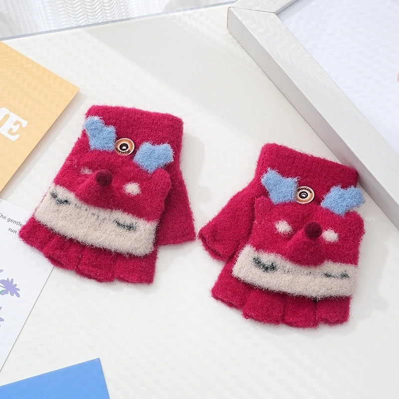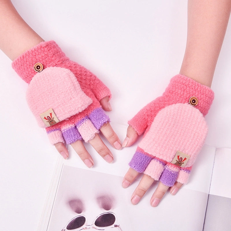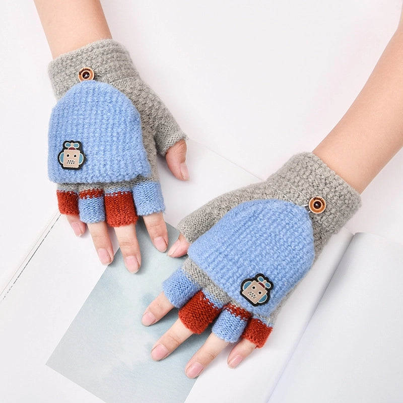 Autumn And Winter Children's Flip Knitted Gloves Half Finger Dual-purpose Boys And Girls Cute Warm Exposed Fingers Children Students 3