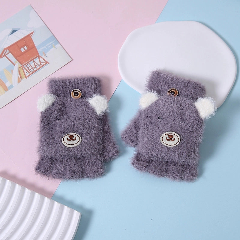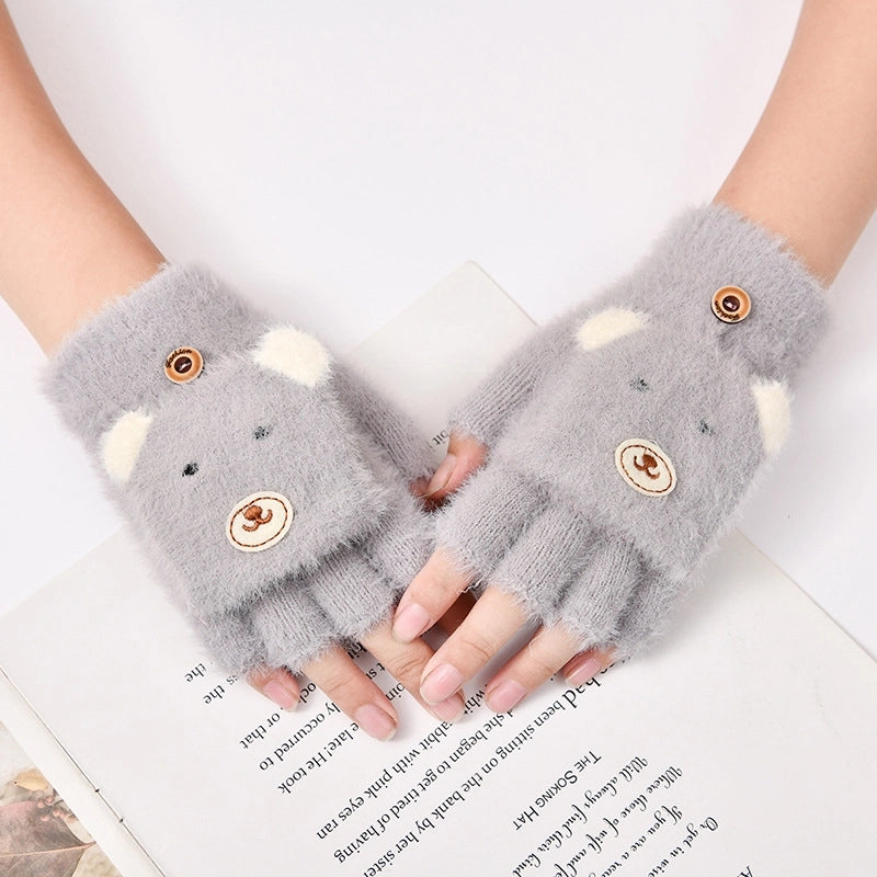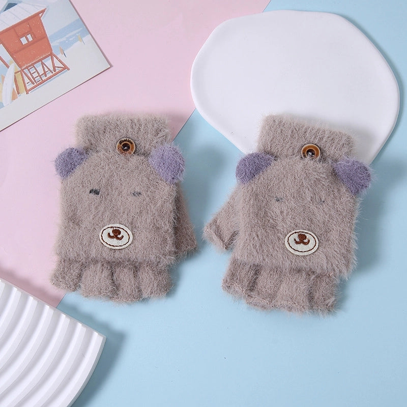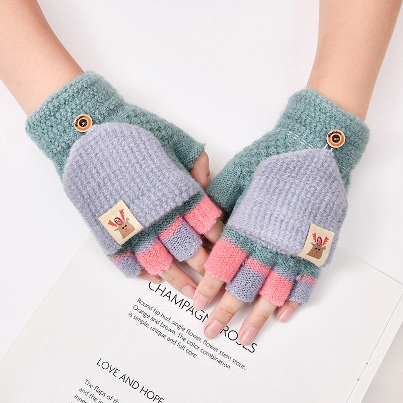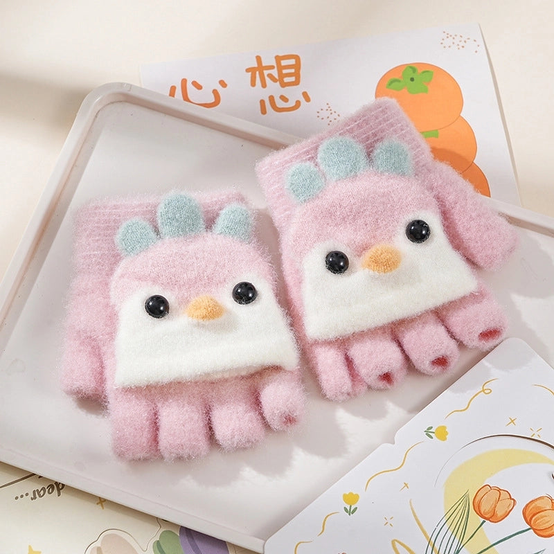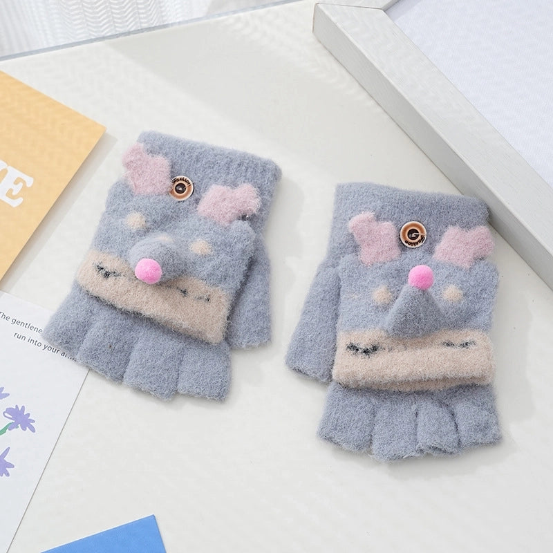Autumn And Winter Children's Flip Knitted Gloves Half Finger Dual-purpose Boys And Girls Cute Warm Exposed Fingers Children Students 3