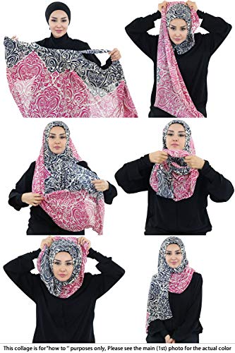 Aisha's Design Chiffon Hijab Scarf for Women Muslim, Presewn Instant Turban Shawl, Navy Blue - Fuchsia 5