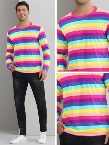 Lars Amadeus Rainbow Striped T-Shirt for Men's Crew Neck Long Sleeves Casual Pullover Tee Shirts 3