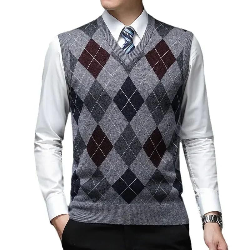 Men's Woolen Sweater Warm Diamond Shaped Lattice Casual Business V-Neck Sweater Vest 1