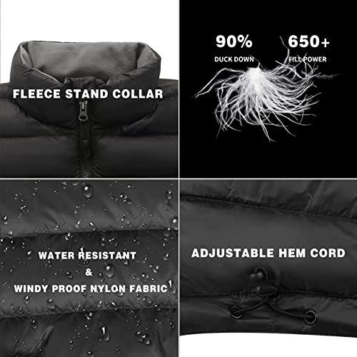 • MENS DOWN VEST: The down vest keeps you warm in cold conditions, 90% duck down and 650-fill-power, offers warmth in winter. And nylon shell fabric, windproof and water resistant, ensure warmth can be maintained even on snowy and rainy days