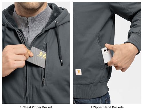 Rdruko Men's Work Jackets Flannel Lined Insulated Cotton Workwear Hooded Winter Coats(Iron Gray, US XL) 6