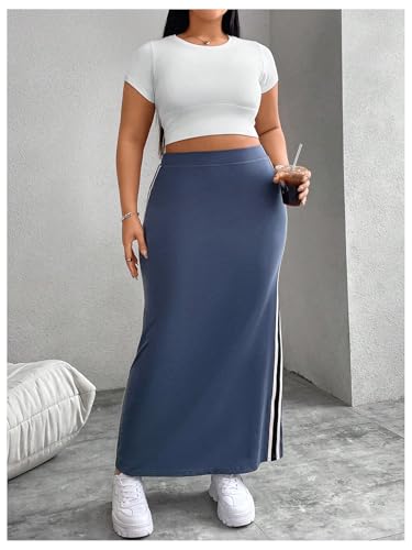 More information about OYOANGLE Women's Plus Size Contrast Binding Bodycon Maxi Skirt Elastic High Waist Casual Long Skirts