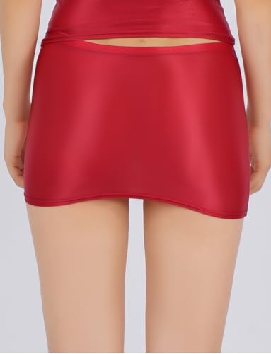 More information about Panegy Women Shiny Oily Bodycon Skirt Sexy Glossy Low Waist Solid Mini Skirt Wet Look Stretch Slim Bottom