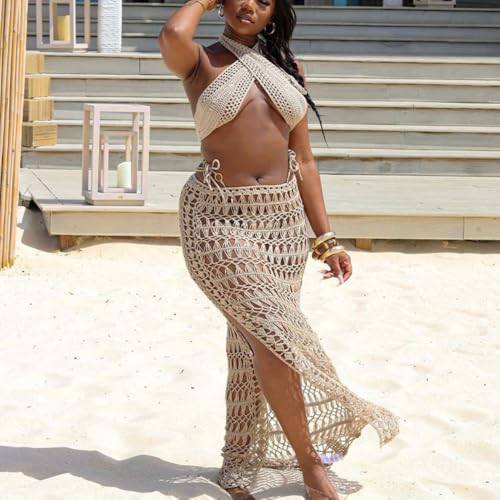 HOT ! Crochet Two Piece Maxi Skirt Set Boho Summer Vacation 2025 Vacation Summer 2025 Trendy Going Out Outfits