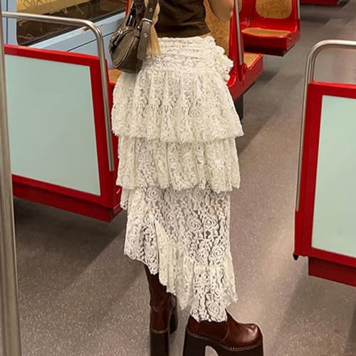 Women's Fashion Instagram Irregular Half Skirt Women's Asymmetric Design Lace Flower Half Skirt 5