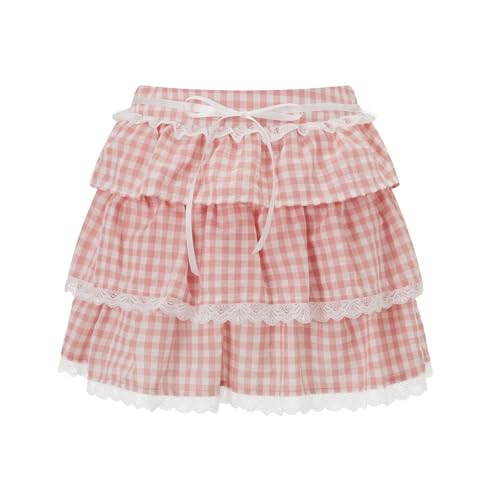 HOT ! Women Y2K Plaid Lace Trim Ruffled Short Skirts Gingham Layered Mini Skirt Tiered A-line Short Skirt Dresses Streetwear