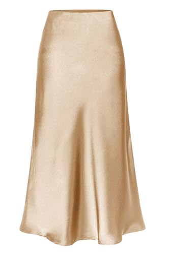 HOT ! CHARTOU Women Flowy Midi Satin Skirt Side Slit Wrap Skirt Bodycon Elastic High Waist Silk Slip A Line Skirt