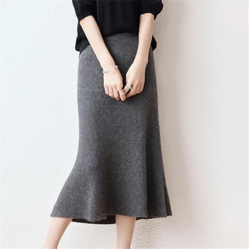 Women Autumn Winter Wool Skirt High Waist A-Line Slim Fishtail Knitted Long Skirt 6