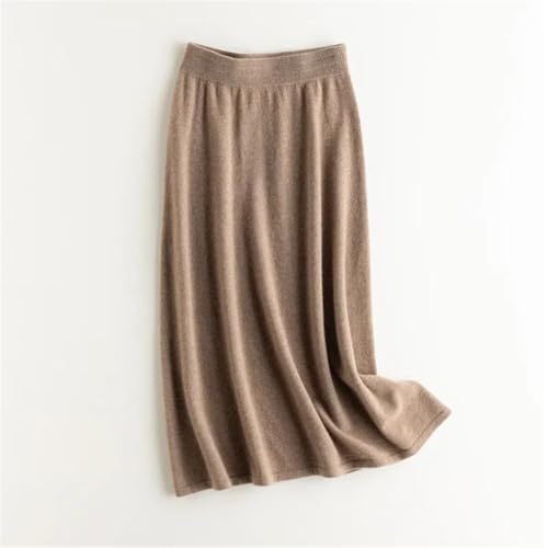 Women's Fall Winter Half Body Slimming Wrap Around Style Solid Cashmere Knitted Long Skirt Dark Lighttan One Size 6
