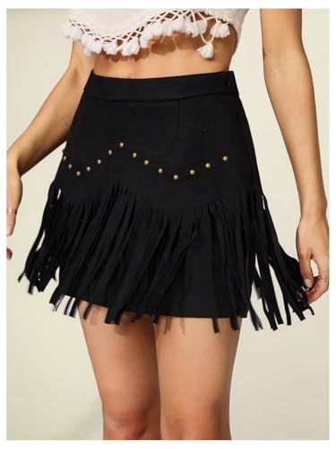Verdusa Women's Faux Suede Fringe Hem Mini Skirts Cowgirl Western High Waisted Bodycon Skirt 6