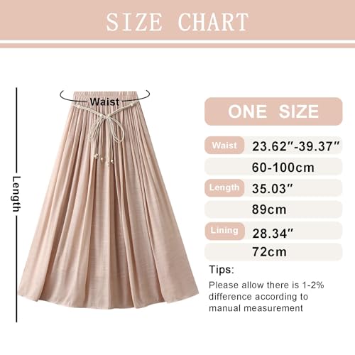 More information about Womens Cotton Linen Skirt Elastic Waist Pleated Skirts Drawstring A-Line Midi Skirt Loose Fit Casual Trendy Skirts