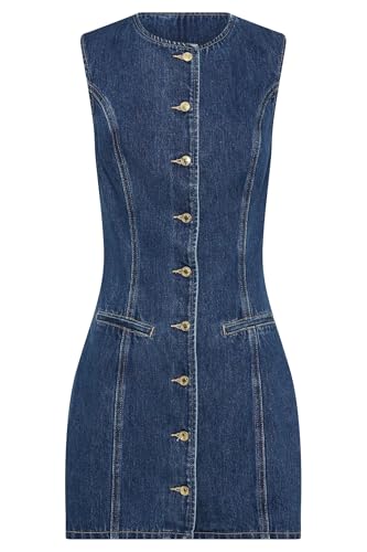 HOT ! Women's Denim Mini Dress Sleeveless Crewneck Button Up Bodycon Stretchy Casual Jean Tank Dresses