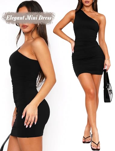 • Black One Off Shoulder Mini Dresses for Women Trendy: Club night out dress,cute sexy going out bodycon dress,elegant cocktail party dresses rave outfits,casual summer short prom dress, homecoming dress sleeveless y2k ruched dress