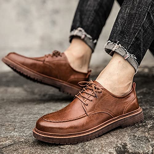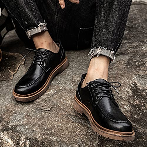 Men's Leather Oxford Dress Shoes,Vintage Modern Classic Luxury Lace-up Stacked Heel Business Work Formal Casual Shoes 7