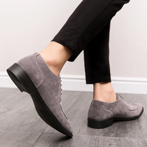 Mens Retro Suede Leather Lace Up Dress Oxfords Shoes Classic Slip On Low Top Pointed Toe Non-Slip Flats Derby Shoes for Formal Business Wedding (Coffee Color,6) 5