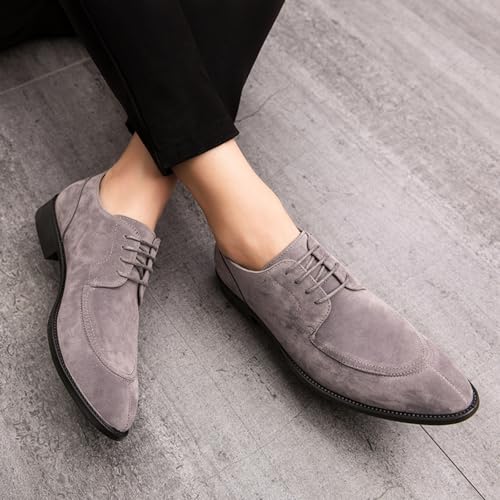 Mens Retro Suede Leather Lace Up Dress Oxfords Shoes Classic Slip On Low Top Pointed Toe Non-Slip Flats Derby Shoes for Formal Business Wedding (Coffee Color,6) 7