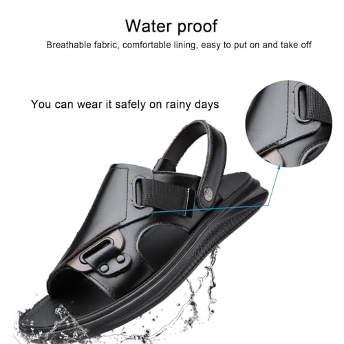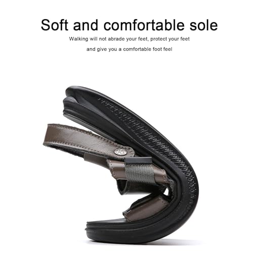 Mens Sandals Leather Outdoor Casual, Anti Slip Breathable Hiking Beach Sandals Slip on Open Toe Slipper for Outdoor Beach Walking Driving 5