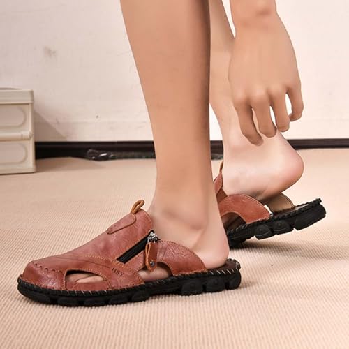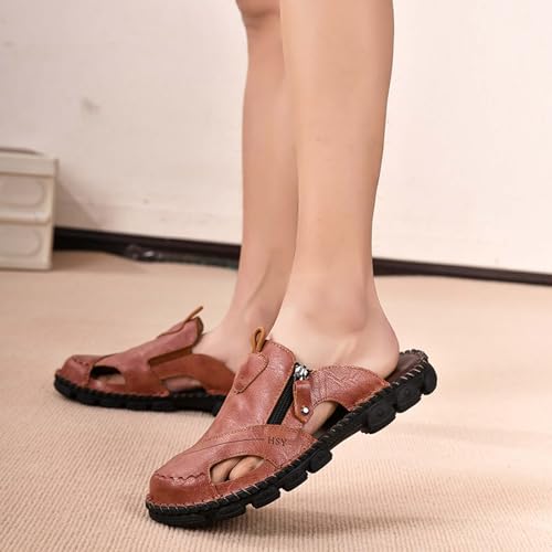 Men's Closed Toe Leather Sandals Summer Casual Breathable Fisherman Beach Shoes Comfortable Outdoor Slip On 6
