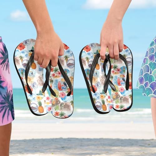 More information about Burbuja Tropical Patchwork Stamp Flip Flops for Women Men, Soft Thong Sandals Rubber Slippers for Pool Beach Essentials