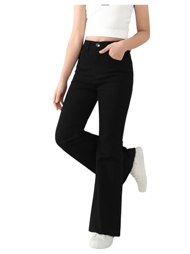 SHENHE Girl's High Waisted Flare Leg Frayed Raw Hem Bell Bottom Jeans Denim Pants 4