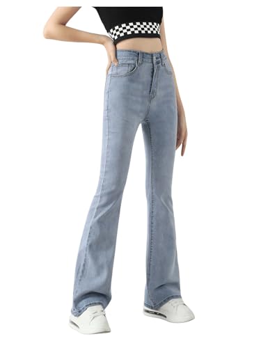 SweatyRocks Girl's Casual High Waisted Zip Up Jeans Solid Flare Leg Stretch Denim Pants 4