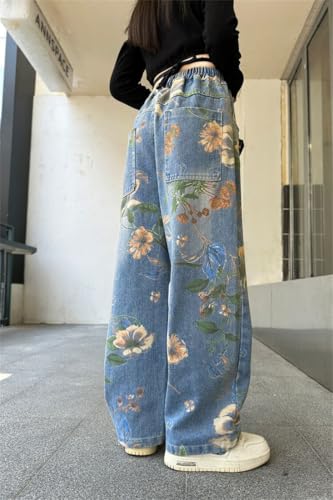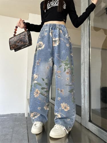 More information about Kids Girls Jeans Elastic Waist Streetwear Denim Baggy Wide Leg Jeans Straight Pants