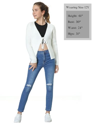 EXARUS Girls Jeans Pants Skinny Denim Pant Ripped High Waist Elastic Band Casual with Pockets Kids 6