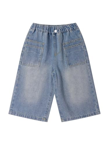 easyforever Kids Girls Denim Cropped Pants Elastic Waist Straight Wide Leg Capri Trousers Loose Jeans Size 5-15 Years 6