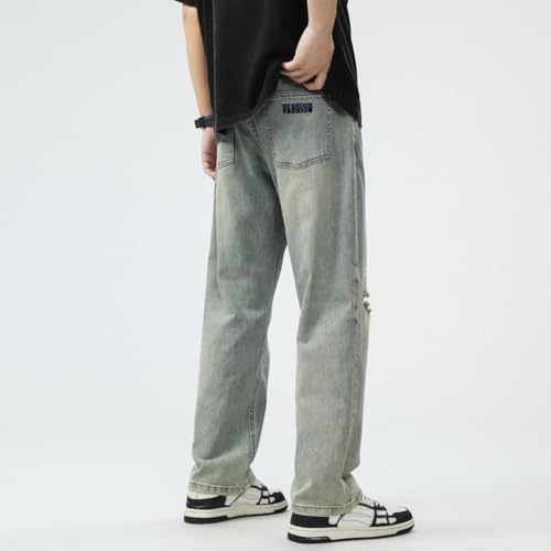 Jeans Pants Trousers Denim Vintage Distressed Style Casual Loose Straight Leg 7