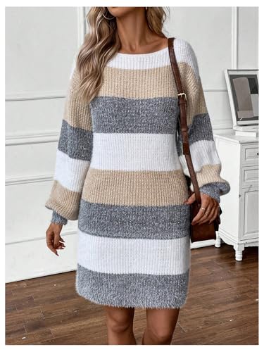 SOLY HUX Sweater Dresses for Women 2025 Long Sleeve Striped Knit Dress Fall Winter Dresses for Women Trendy 2