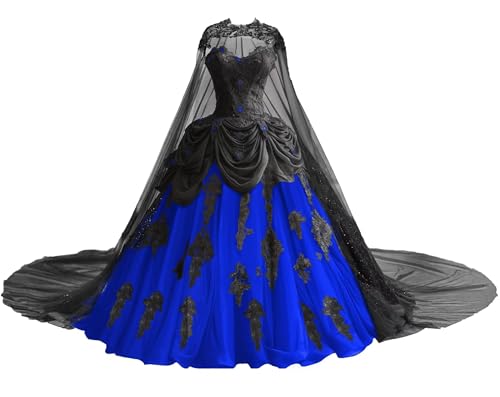 • Features:Black gothic wedding dresses with cape;sparkly lace applique bride dresses;strapless puffy tulle wedding gown;tiered bridal gown for women;vintage wedding dresses for bride;ruched quinceanera dresses;layered bridal gowns with train;sweetheart quince dresses