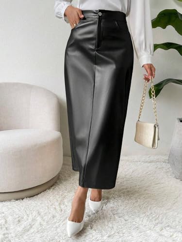 More information about Solid Color High Waist Button Skirt PU Leather 2025 Fashion Skirts for Women