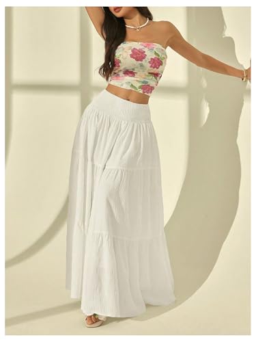 GORGLITTER Women's Tiered Ruffle A Line Maxi Skirt High Waisted Flowy Y2k Coquette Long Skirts 2