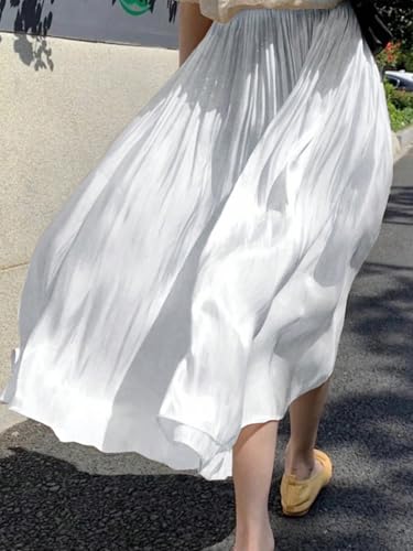 More information about Women's Elegant Pleated Midi Skirt High Waisted A Line Flowy Swing Boho Long Beach Elastic Waist Summer White Skirts