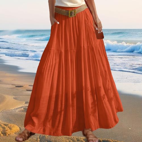 HOT ! Women's Casual Boho Elastic Waist Cotton Linen A-Line Maxi Skirts, 2025 Fashion Soft Swing Beach Long Skirt with Pockets