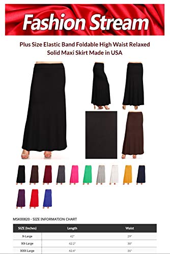 More information about Women's Plus Size Elastic Band Foldable High Waist Relaxed Solid Maxi Skirt Made in USA