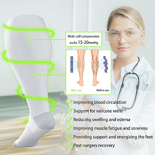 • Medical Compression Socks: Extra wide calf compression socks are ideal for women prenancy and post-surgery recovery. They reduce soreness, alleviate pain from swelling during pregnancy, and provide support that eliminates fatigue and energizes the legs. Best compression Socks for nurses, physical therapist, long shift work, air plane travel, pregnant women.