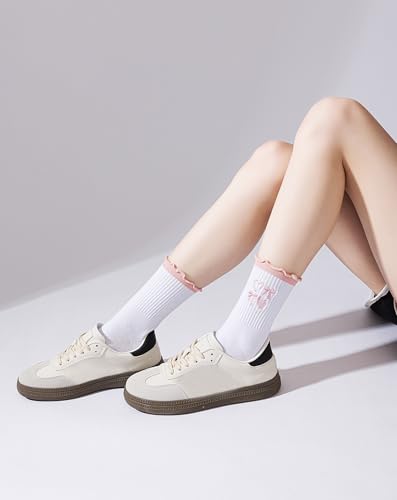 Yawlsow Cute Pilates Grip Socks for Women Ruffle Frilly Yoga Socks Non Slip Cotton Crew Grippy Sock for Barre Workout 5