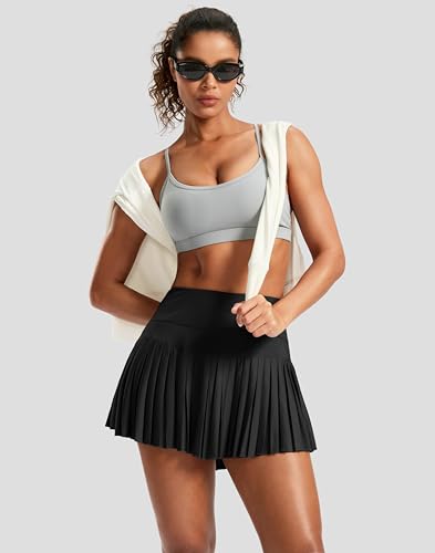 HOT ! SANTINY Pleated Tennis Skirt for Women with Pockets High Waisted Athletic Golf Skorts with Shorts for Workout Pickleball
