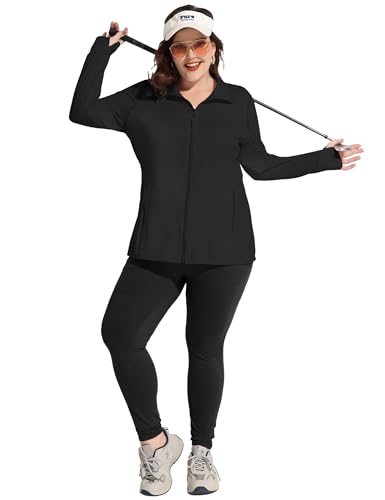 HOT ! COOTRY Women's Plus Size Athletic Jackets Zip Up Lightweight Workout Running Track Jackets with Thumb Holes