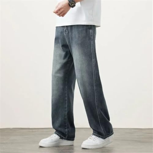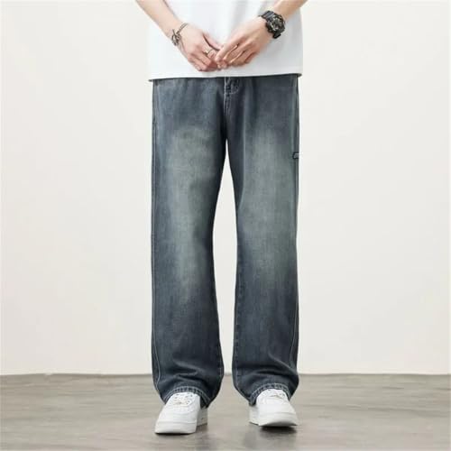 Men Loose Jeans Breathable Korean Straight Trousers Vintage Denim Jeans Pants Blue 33 6