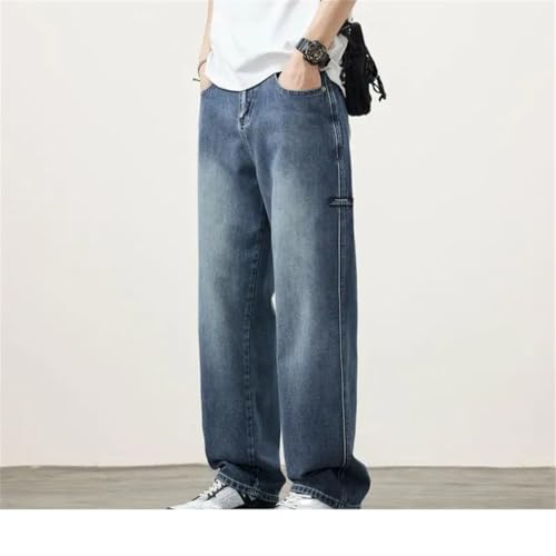 Men Loose Jeans Breathable Korean Straight Trousers Vintage Denim Jeans Pants Blue 33 5
