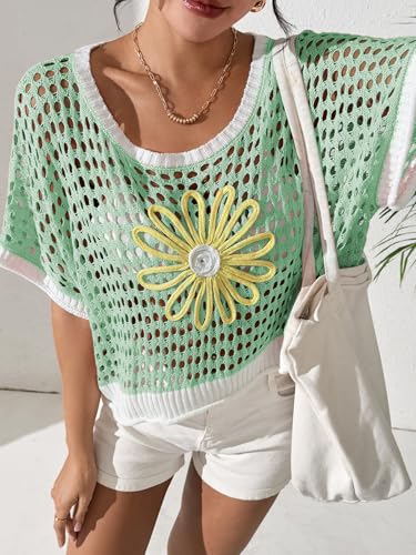 • Cover Up Features: This Cute Summer Coverup Tops features with Floral, Crochet Knit, Hollow Out, Scoop Neck, Off Shoulder, Batwing Half Sleeve, Loose Fit, that elevates your wardrobe