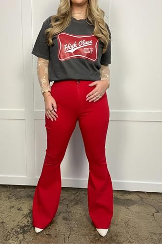 HOT ! Willow Boutique High Waisted Bootcut Jeans for Women – Stretchy Bell Bottom Flare Pants | Western Bottoms for Women - Red