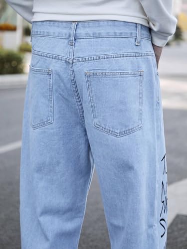 More information about Men's Baggy Jeans Y2K Vintage Gothic Alphabet Print Jeans Black Denim Pants Wide Leg Pants Streetwear