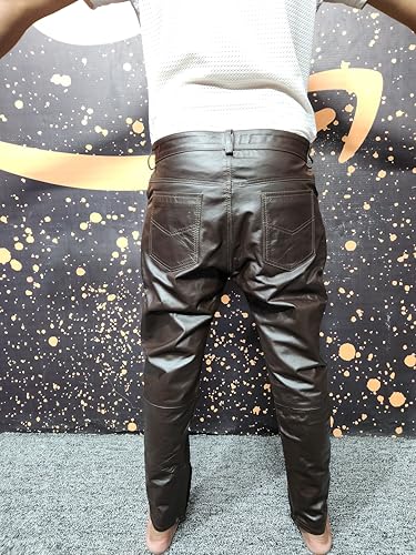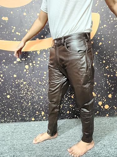 Men's Fashion Genuine Cowhide Biker Bomber Cowboy Leather Pants 4